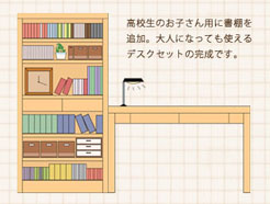 学習スペースの作り方今回はお子さんが成長した後も使える学習スペースの作り方をご提案させて頂きます。お子さまの学習机をお選びの際、年齢を問わず使えるシンプルなデスクにブックシェルフや収納家具を合わせてお子さま用の学習スペースを作られる方が増えてきています。→READ MORE