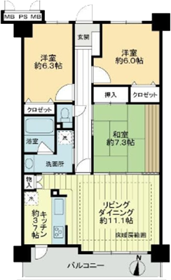 中古マンションを従来の3LDKから2LDKへ変更し、