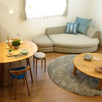 コーディネート事例・10畳未満のリビングダイニングに曲線のある家具をチョイス9/17 UP