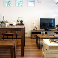 コーディネート事例・ウォールナット材と古材の家具をミックスした空間9/30 UP
