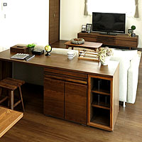 収納棚付き、ウォールナット材の素材感が魅力のローテーブル1/23 UP