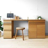 ホワイトオーク材のユニット収納デスク9/2 UP