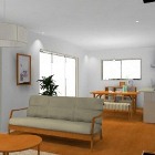 オーク無垢材の家具で統一したリビングダイニング空間
