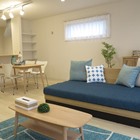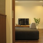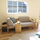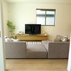 リビングを広く見せるためにチョイスした“背もたれなしソファ”