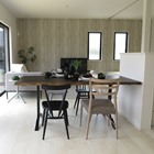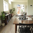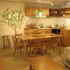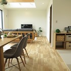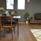 ラスティックオーク材のフローリングに西海岸風なカフェのイメージでコーディネート