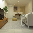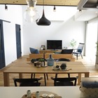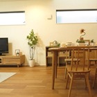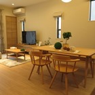 奥行き24mという土地に設計された長いリビングダイニング空間を活かす家具の配置