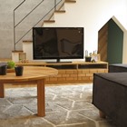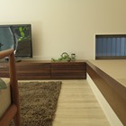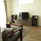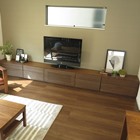 カーテンが納まるスペースまで考えたコーナータイプのテレビボードを提案