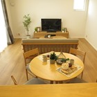 照明の位置に合わせて円形のダイニングテーブルを提案!