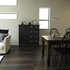チェリー色のフローリングにウォールナットブラウン色とブラック色をテーマカラーとしたコーディネート