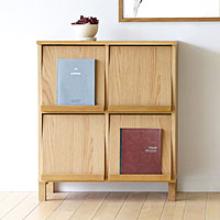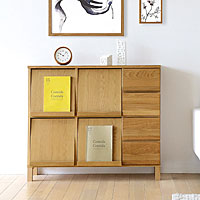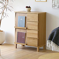 ナラ無垢材で作られた丸みのあるかわいらしいシェルフキャビネット