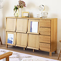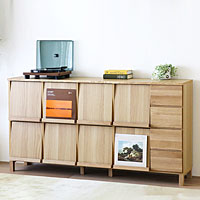 ホワイトオーク材のユニット収納ボード サイドボード 幅180cm